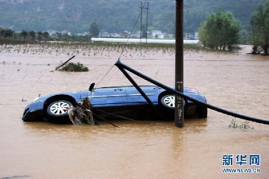8月12日,在贵州212省道威宁县猴场镇境内,一辆汽车被洪水冲走。 8月10日以来,受持续强降雨影响,贵州省多地遭受暴雨洪涝灾害。截至12日14时,强降雨导致12人死亡、12人失踪,3.5万余人紧急转移安置。受灾最严重的习水、赤水、威宁等地交通、电力、通讯设施损毁严重,城镇发生不同程度的内涝。为应对灾情,贵州省减灾办、省民政厅于12日1时30分将省级救灾应急响应由四级提升为三级。据贵州省气象台预计,12日至13日,贵州中部以东以南地区仍有降雨,局地中到大雨,个别乡镇暴雨,防洪防汛及防范地质灾害工作仍然严峻。新华社发(岳刚 摄)