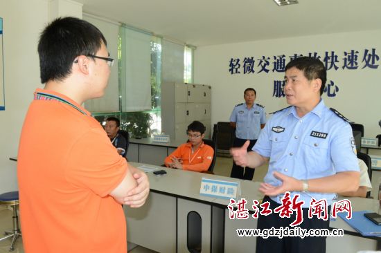 湛江新闻网讯:8月11日,省依法治省公办室副处长胡文辉率广东电视台、南方网等媒体记者一行7人组成省采访报道组,在市人大常委会副秘书长冯健、市依法治市办公室副主任龙卫的陪同下来到快处快赔中心,对我市按法治框架解决基层矛盾试点工作进行采访拍摄,湛江市区道路交通事故快处快赔工作成为我市法治框架解决基层矛盾亮点接受采访,市公安局交警支队吴小明支队长、交管大队吴进强大队长分别向省采访报道组介绍了我市道路交通事故快处快赔工作的运作情况。