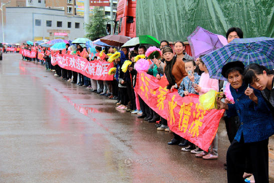 部队撤离鲁甸灾区 上万群众冒雨送行
