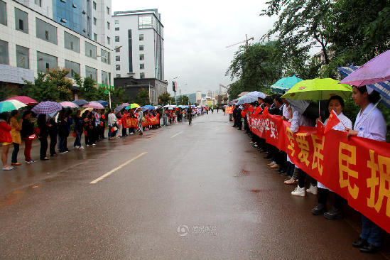 部队撤离鲁甸灾区 上万群众冒雨送行
