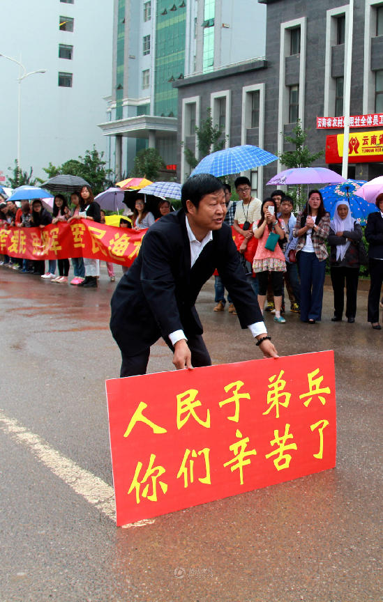 部队撤离鲁甸灾区 上万群众冒雨送行