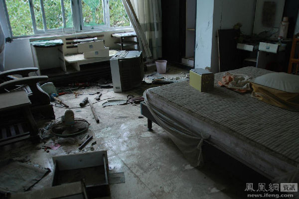 2006年8月10日,公安人员封了念斌的食杂店,并向一百多名村民宣布念斌是投毒案凶手。愤怒的丁家人和俞家人纠集数百人,打砸了念斌与父母、哥哥共居的家,姐姐念建兰见状,带着父母和侄子匆匆逃到福州躲难。图为念斌被打砸的家。