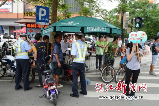 湛江新闻网讯:为进一步巩固市区交通秩序综合整治专项行动成果,按照市区交通秩序综合整治专项行动指挥部和交警支队吴小明支队长的指示要求,针对电动车、行人出现冲红灯现象的苗头,交警霞山大队迅速部署新一轮的整治行动,设置“二道卡”,拉开交通整治新架势,重点打击电动车冲红灯、不按道行驶、逆向行驶、不戴安全头盔、非法营运等交通违法行为。从8月16日至25日,十天共出动警力980人次,警车530辆次,查处纠正各类冲红灯交通违法行为560宗,现场教育群众1150人次,整治行动收到警示效果和起到震慑作用。