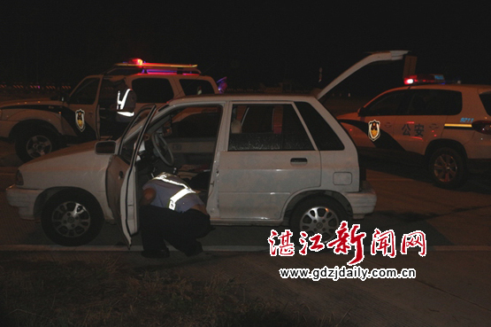 8月29日凌晨2时20分左右,湛江交警支队高速二大队勤务一中队两名执勤民警,在沈海高速公路湛徐段遂溪服务区东侧进行巡查时,发现停着一辆没有悬挂车辆号牌的白色小轿车,于时要求驾驶员出示行驶证、驾驶证接受检查。车内2名男子见到民警要检查,佯装取证件拔腿就往服务区外的树林逃跑,消失在浓浓的夜幕中……