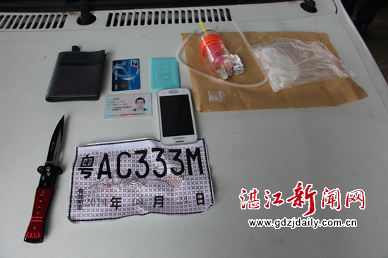 湛江新闻网讯:2104年8月28、29日是公安部“打四非、查四违”第三次全国集中统一行动日,湛江交警支队高速公路二大队民警在行动中查获一辆无牌无证小汽车,并在车内搜出一大一小2包重约100克的疑似毒品和一套吸食工具。