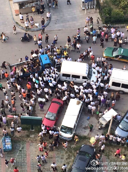 8月29日下午3点左右,海淀区北京国际温泉酒店南门附近,西三旗城管、警察及街道办联合执法查抄路边占道摊位,一男子旁观时被10多名着白色制服的执法者追打。被打男子多名同事赶到后,围堵执法车讨说法,并将两执法车车胎放气。多名目击者证实着制服的打人男子曾参与执法。