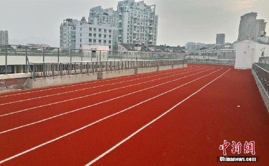 9月1日,浙江省天台县赤城街道第二小学的房顶200米环形跑道正式启用。中新社发 潘嘉楠 摄
