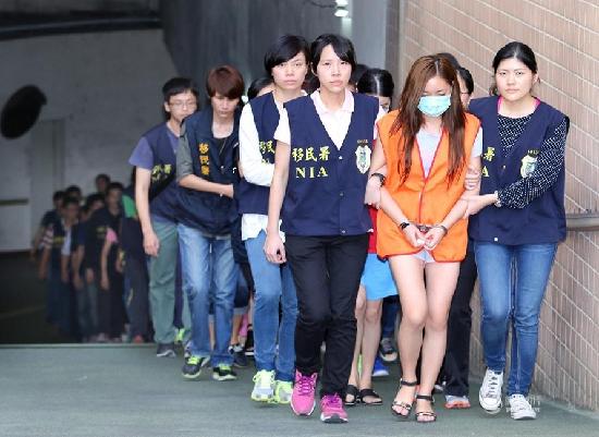 2014年9月3日,台湾“移民署”拂晓出击,破获双北地区最大卖淫集团,逮捕二十多人。大陆某艺术学院20岁学生花名“彩蝶”(前中),以医美健检名义来台,第二次来台还没拿到钱就被查获。