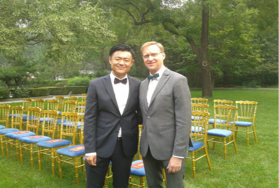 今天上午,33岁的张志鹄与50岁的戴维绅在英国驻华大使的见证下,缔结了婚姻。在中国,他们是第二对登记注册结婚的英国同性恋伴侣。“虽然他违背了我的传统,但我仍旧给他最大的祝福。”张志鹄的父亲在婚礼上说道。