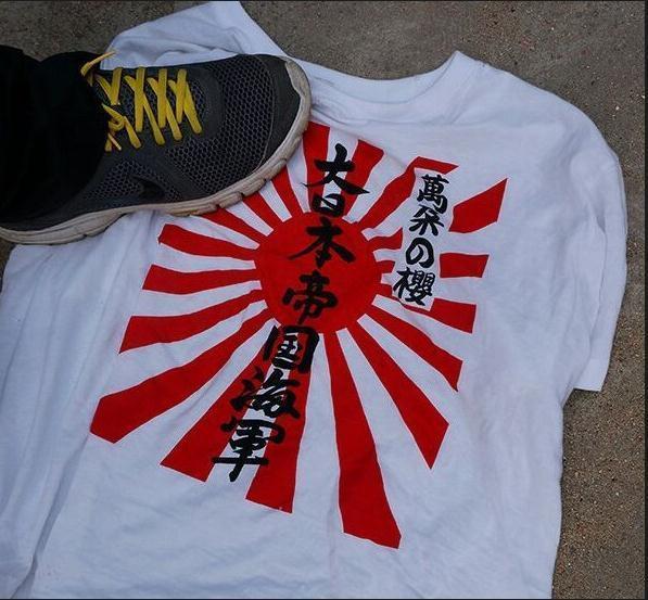 男子所穿印有“大日本帝国海军”字样的T恤衫。