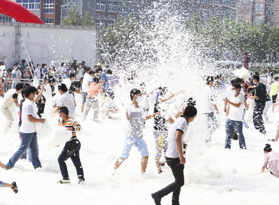 9月6日,中秋节假期首日,烟台上演千人“枕头大战”,吸引了不少美女帅哥参战。