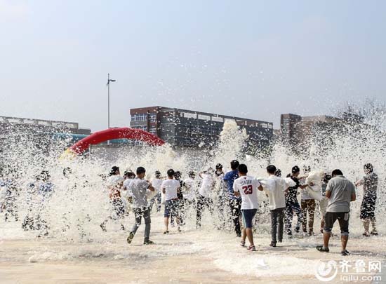 烟台千人“枕头大战”迎中秋 美女帅哥齐上阵