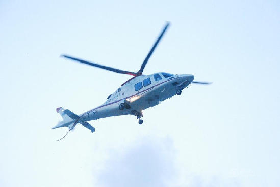 据饭店工作人员介绍,为了迎接直升机降落,和平饭店提前将停车场都腾空了。傍晚6点左右,直升机在大丰市区上空转了几个圈,然后准备降落在饭店门前。记者在现场看到,虽然噪音和风很大,但仍然来了许多人围观,甚至一度引起附近交通堵塞,直升机在降落时扬起很大灰尘,让人几乎睁不开眼睛。几分钟后直升机停稳,从上面下来3个人,紧接着他们坐上了一辆小汽车离开。