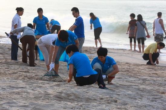 中秋夜后 三亚千人连夜清理45吨海滩垃圾