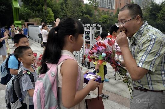 重庆一校长坚持6年校门口迎送学生 弯腰问好