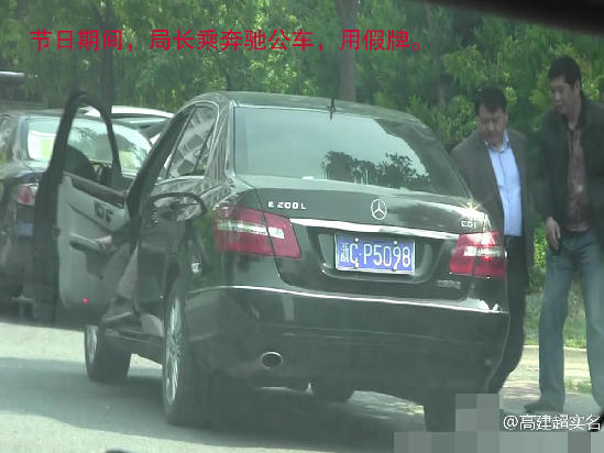 图中文字为:节日期间,局长乘奔驰公车,用假牌。
