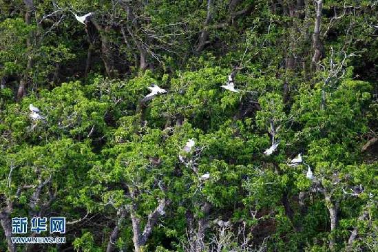 查春明表示,谨以此书献给祖国母亲和美丽的海洋,献给热爱海洋、保护海洋的人们,献给守卫祖国海洋国土的海疆卫士。图为西沙东岛上的白鲣鸟和原始森林。