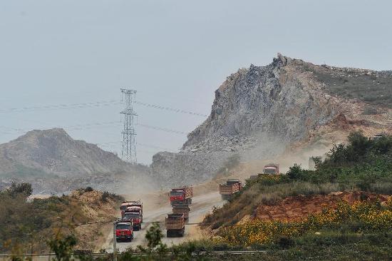 图为众多运输土石方重型卡车穿梭在辽宁省大连新机场建设工地。由于旅客吞吐量增长迅速,大连周水子国际机场目前已经超负荷运行,经过三期改造后,其运输能力也将在2016年左右达到饱和。2012年年初,大连开始兴建大连金州湾国际机场项目。新机场采取离岸填海的方式建设,面积达20.87平方公里,工程总造价初步估算约263亿元,建成后能起降世界最大客机空客A380并成为世界最大的海上机场。