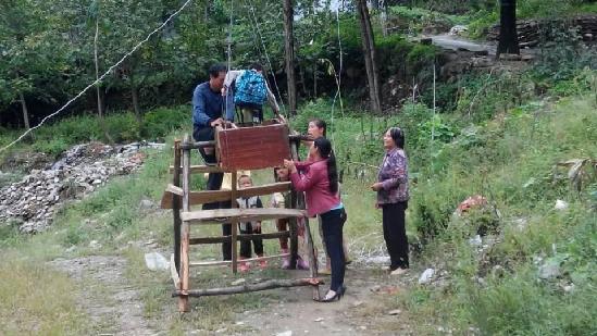 河水暴涨冲毁便桥 陕西村民自制滑索送孩子上学