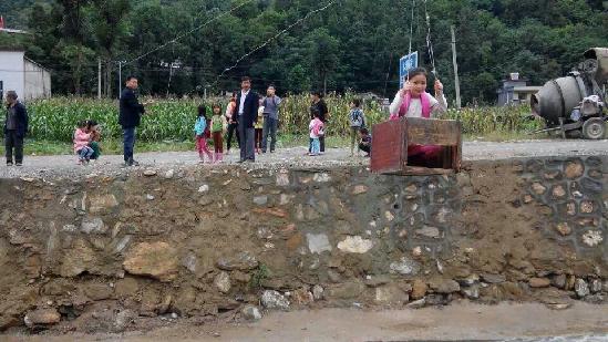 河水暴涨冲毁便桥 陕西村民自制滑索送孩子上学