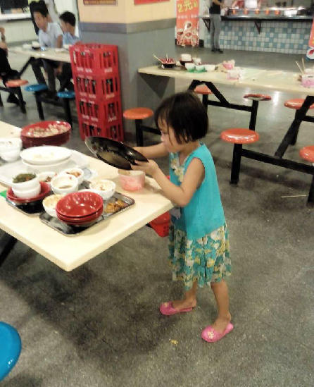 6岁女童高校食堂收剩饭盘子 大学生惭愧