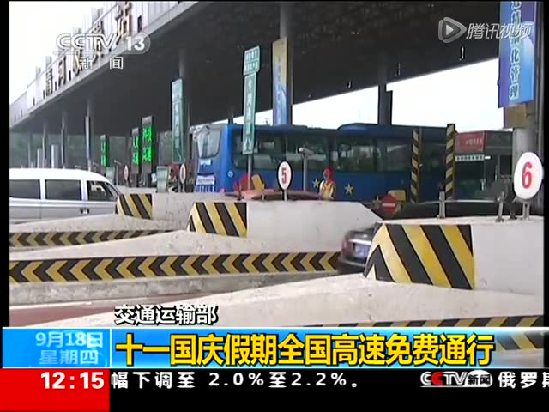 中新网9月18日电据交通部网站消息,“十一”黄金周假期是旅游、休闲、探亲的高峰期,根据国务院有关规定,今年“十一”将继续实行小型客车免收通行费政策,具体时间为10月1日零时至10月7日24时。