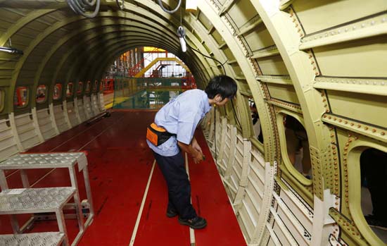 所谓大飞机,是指起飞总重量超过100吨的运输机,在中国150座以上的客机被称作“大型客机”,100座以下的叫做“支线飞机”;大飞机也是民航使用最广泛的主力机型。目前,国际大飞机市场主要被波音和空客所霸占。市场预计未来20年,中国市场将接收50座以上客机5357架,折合人民币近4万亿元。而作为新一代喷气式干线客机,C919未来将同波音737MAX和空客A320neo展开正面竞争。图为工程技术人员在C919大型客机的前机身与中机身处进行对接作业。