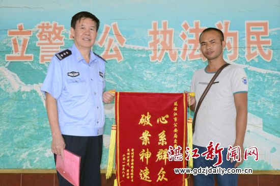 湛江新闻网讯:9月21日上午,事故遇难者家属从雷州专程来到湛江,将一面印有“心系群众,破案神速”的锦旗及热情洋溢的感谢信送到市公安局交警支队,感谢办案民警尽职尽责,成功侦破“企图销毁证据”的交通肇事逃逸案,惩治了无良事故逃逸者,还事故逝者一个公道,以表达他们当初对办案民警不信任的内疚悔意和侦破难案的感激之情。