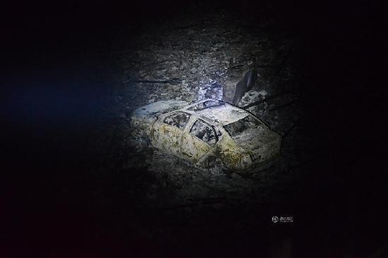 9月23日凌晨,花炮厂厂房内的一辆汽车只剩下空壳。中新社发 杨华峰 摄