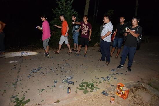 9月23日凌晨,花炮厂附近的居民楼旁,满是被震碎的玻璃。中新社发 杨华峰 摄