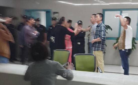 据围观目击者讲述,医疗死亡的患者亲属向医务人员讨要患者死亡原因没有得到院方答复,院方负责人强行要求患者家属把患者遗体运出医院,因而双方发生语言争执。争吵时来了十余名身份不明的社会闲杂人员对死者亲属恐吓和殴打,导致一名患者亲属大腿部位被打淤血,还有一名患者亲属鼻孔出血。一名穿前胸黄花纹后胸和胳膊白色衣服的打人者对死亡患者亲属扬言,“我认识你了,记住你了,你死定了,你们给我滚出医院。”。十余名身份不明的社会闲杂人员穷凶恶极的面孔让围观的目击者咂舌和反感。图为黑社会人员现场趾高气扬。