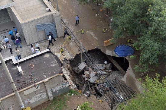 北京朝阳区一路段发生塌陷 半间房掉入大坑