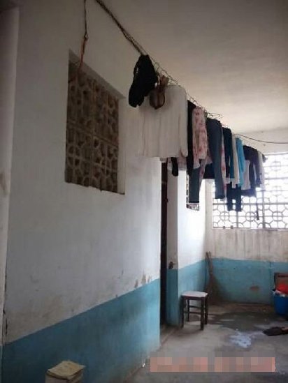 教师宿舍的走廊成了晾衣服的地方,但是冬天比较阴冷,衣服不容易干。