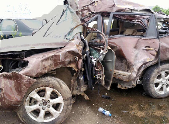 2014年9月29日凌晨2点左右,在南京江宁区龙眠大道药科大学附近的一公交站台,一辆失控的越野轿车撞断电线杆后又猛撞公交站台,驾驶员头部受重创死亡,具体事故原因高新园交警中队正在调查。图为损毁严重的失控丰田越野轿车。