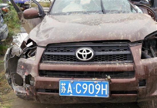 图为损毁严重的失控越野轿车。