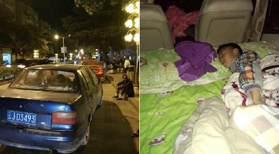 景谷县城群众选择在空旷地点露宿或车里过夜。