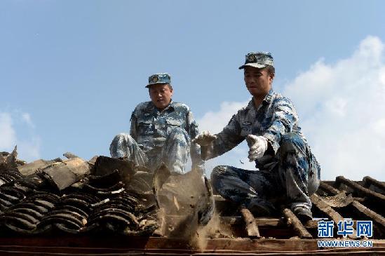 10月8日,救援人员在景谷县永平镇迁毛村拆除危房。云南省普洱市景谷傣族彝族自治县北京时间10月7日21时49分发生6.6级地震。截至8日15时,地震已造成1人死亡、324人受伤、6988间房屋倒塌、5个县(区)12.46万人受灾。新华社记者胡超 摄