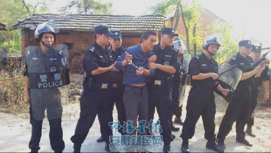 10月3日,公安部B级逃犯江望兵被押回安徽安庆市潜山县,至此,潜山“5. 19”重大强奸杀人案成功告破。2014年5月19日清晨5点,潜山县梅城镇罗汉村平桥组一乡间厕所内,发现一具赤裸女尸,经查,死者系潜山县平桥小学六年级女生小张(化名)。经过现场勘查,警方判断这是一起重大强奸杀人案,案发后,安庆市县两级公安机关立即展开侦破工作,仅一天时间警方就成功的锁定了犯罪嫌疑人的真实身份。图为残害多名女童的变态杀手江望兵被押回潜山指认犯罪现场。