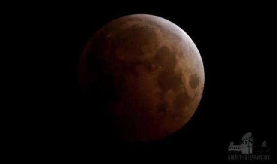 位于美国洛杉矶的格里菲斯天文台拍到的月全食照片。