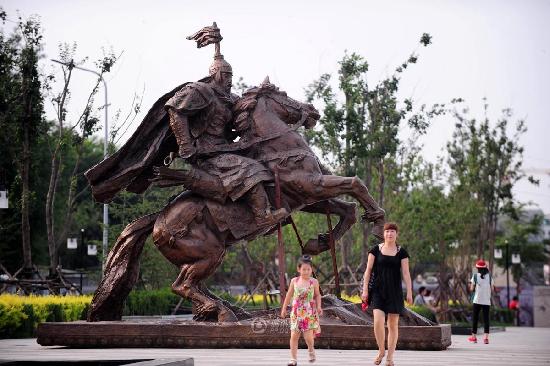 图为资料图:故宫南门100米的巨型努尔哈赤雕像。(7月6日摄)