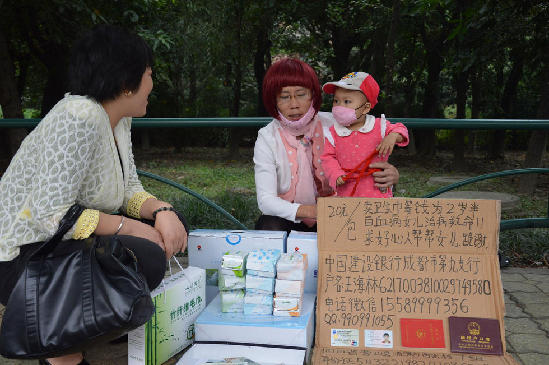 在现场,一位停在路边等人的司机主动给了10元钱给小女孩,据梁先生介绍,家里也有2个几岁的小侄女,确实被这样的男人所触动。两位做毛巾销售的女孩也停下了脚步,了解了孩子的病情以后,也主动献出了一份爱心,并且赠送了价值100元的3条毛巾。