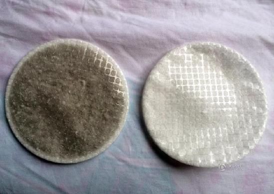 10月10月,北京雾霾天气持续多日,半面罩防毒面具滤芯,室外呼吸10小时变黑。(左为使用10小时的滤芯,右为未使用的滤芯)胖毛/CFP