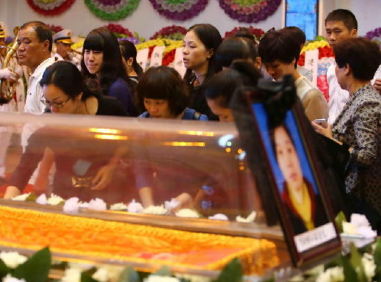 10月10日上午,温州瑞安跳江救人女教师胡小丽遗体告别仪式在温州市殡仪馆举行,市民自发前来悼念这位“最美温州人”。