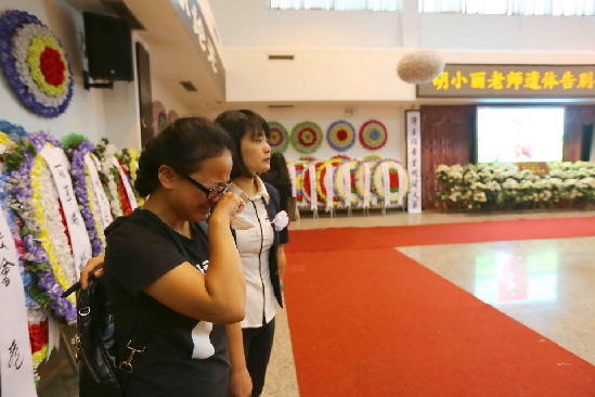 10月10日上午,温州瑞安跳江救人女教师胡小丽遗体告别仪式在温州市殡仪馆举行,市民自发前来悼念这位“最美温州人”。