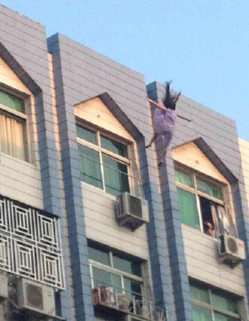据了解,女孩跳下前一分钟左右,消防官兵刚赶到现场,从车上拿下气垫,正准备打开。警方透露,该女子姓刘,25岁,河南人,在瑞安塘下打工,有一个瑞安籍男友。前天,刘某男友提出分手,但刘某不肯而闹自杀……接警民警和刘某的男友及其朋友在六楼楼顶对其进行劝说,但无果。图为瑞安塘下唐川北街一女性跳楼。