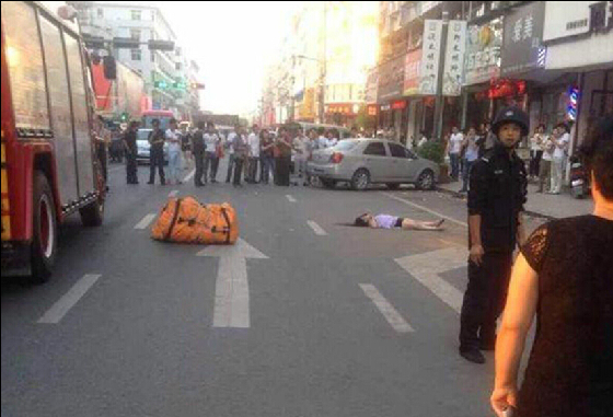 浙江一长裙女子割脉后跳楼现场