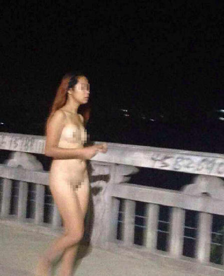 10月11日晚,网友曝光广西龙州一女祼体压马路。据网友称,是因为嗨大了,和朋友打赌,说敢脱光了绕城一圈,就送她一部Iphone6。