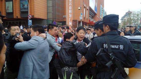 2014年10月12日下午3时许,王府井大街与霞公府街交叉路口处,六个满身酒气的人想挤上一辆出租车,且要在非载客区域上车,被拒绝后与的哥发生肢体冲突。民警到场劝阻时被划伤嘴唇、抓掉肩章。目前6人因涉嫌妨碍公务罪,将面临刑事拘留的处理。法制晚报 张颖川/CFP
