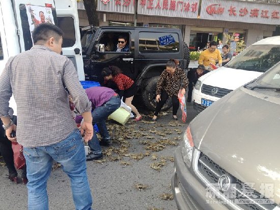 湖南长沙车祸螃蟹满地 路人5分钟抢光