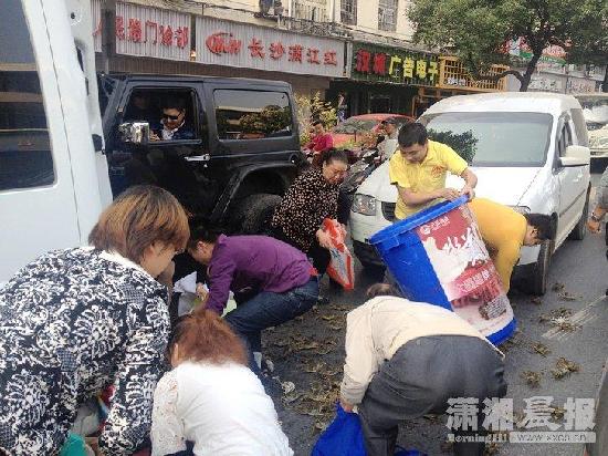 湖南长沙车祸螃蟹满地 路人5分钟抢光